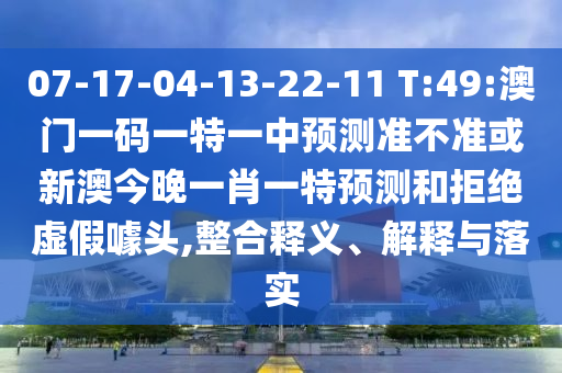 07-17-04-13-22-11 T:49:澳門一碼一特一中預測準不準或新澳今晚一肖一特預測和拒絕虛假噱頭,整合釋義、解釋與落實