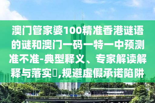 澳門管家婆100精準(zhǔn)香港謎語的謎和澳門一碼一特一中預(yù)測準(zhǔn)不準(zhǔn)-典型釋義、專家解讀解釋與落實?,規(guī)避虛假承諾陷阱