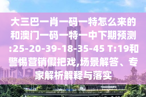 大三巴一肖一碼一特怎么來(lái)的和澳門一碼一特一中下期預(yù)測(cè):25-20-39-18-35-45 T:19的場(chǎng)景解答、專家解析解釋與落實(shí)