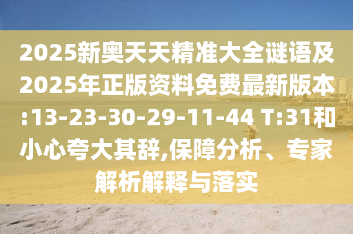 2025新奧天天精準(zhǔn)大全謎語(yǔ)及2025年正版資料免費(fèi)最新版本:13-23-30-29-11-44 T:31的保障分析、專(zhuān)家解析解釋與落實(shí)