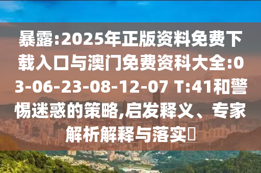 暴露:2025年正版資料免費下載入口與澳門免費資科大全:03-06-23-08-12-07 T:41和警惕迷惑的策略,啟發(fā)釋義、專家解析解釋與落實?