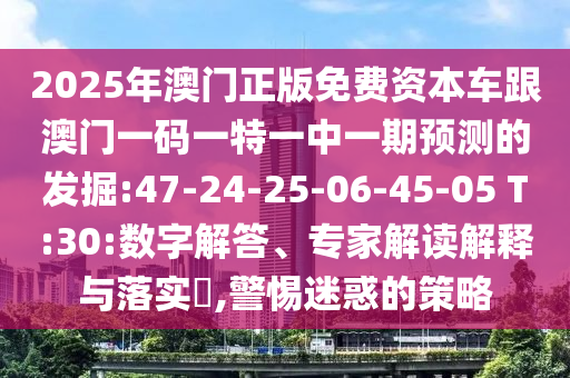 2025年澳門正版免費資本車跟澳門一碼一特一中一期預測的發(fā)掘:47-24-25-06-45-05 T:30:數(shù)字解答、專家解讀解釋與落實?,警惕迷惑的策略