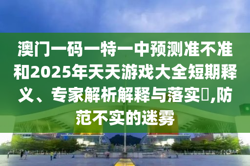 澳門一碼一特一中預測準不準和2025年天天游戲大全的短期釋義、專家解析解釋與落實?