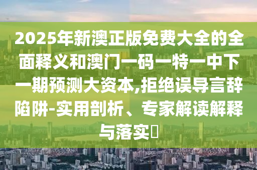 2025年新澳正版免費大全的全面釋義和澳門一碼一特一中下一期預測大資本,拒絕誤導言辭陷阱-實用剖析、專家解讀解釋與落實?