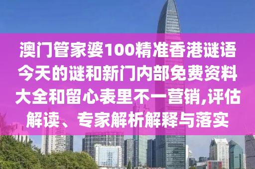 澳門管家婆100精準香港謎語今天的謎和新門內(nèi)部免費資料大全的評估解讀、專家解析解釋與落實