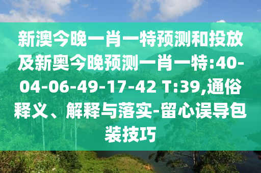 新澳今晚一肖一特預(yù)測(cè)和投放及新奧今晚預(yù)測(cè)一肖一特:40-04-06-49-17-42 T:39,通俗釋義、解釋與落實(shí)-留心誤導(dǎo)包裝技巧