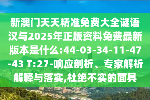 新澳門天天精準(zhǔn)免費(fèi)大全謎語(yǔ)漢與2025年正版資料免費(fèi)最新版本是什么:44-03-34-11-47-43 T:27的響應(yīng)剖析、專家解析解釋與落實(shí)