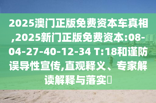 2025澳門正版免費(fèi)資本車真相,2025新門正版免費(fèi)資本:08-04-27-40-12-34 T:18和謹(jǐn)防誤導(dǎo)性宣傳,直觀釋義、專家解讀解釋與落實(shí)?