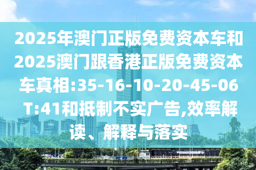 2025年澳門(mén)正版免費(fèi)資本車(chē)和2025澳門(mén)跟香港正版免費(fèi)資本車(chē)真相:35-16-10-20-45-06 T:41的效率解讀、解釋與落實(shí)
