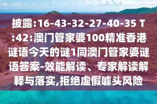16-43-32-27-40-35 T:42:澳門管家婆100精準(zhǔn)香港謎語今天的謎1同澳門管家婆謎語答案的效能解讀、專家解讀解釋與落實