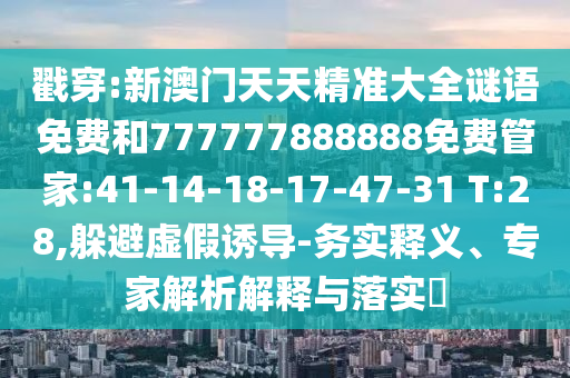 新澳門天天精準(zhǔn)大全謎語免費(fèi)和777777888888免費(fèi)管家:41-14-18-17-47-31 T:28,躲避虛假誘導(dǎo)——務(wù)實釋義、專家解析解釋與落實”的解析