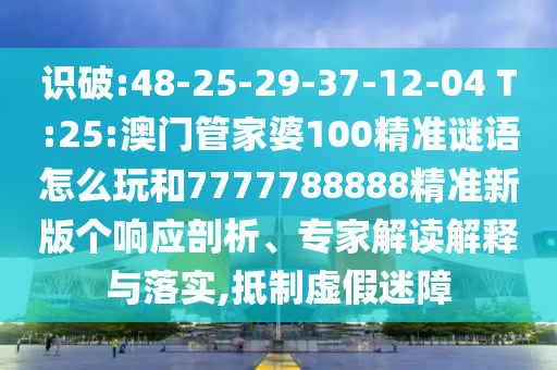 識破:48-25-29-37-12-04 T:25:澳門管家婆100精準謎語怎么玩和7777788888精準新版?zhèn)€響應(yīng)剖析、專家解讀解釋與落實,抵制虛假迷障
