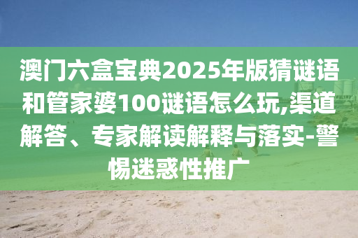 澳門六盒寶典2025年版猜謎語和管家婆100謎語怎么玩,渠道解答、專家解讀解釋與落實(shí)-警惕迷惑性推廣