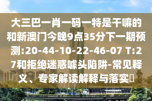 大三巴一肖一碼一特是干嘛的和新澳門(mén)今晚9點(diǎn)35分下一期預(yù)測(cè):20-44-10-22-46-07 T:27和拒絕迷惑噱頭陷阱-常見(jiàn)釋義、專(zhuān)家解讀解釋與落實(shí)?