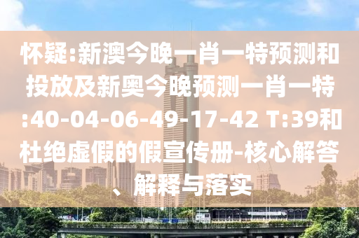 懷疑:新澳今晚一肖一特預(yù)測和投放及新奧今晚預(yù)測一肖一特:40-04-06-49-17-42 T:39和杜絕虛假的假宣傳冊-核心解答、解釋與落實