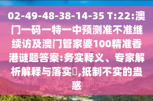 02-49-48-38-14-35 T:22:澳門一碼一特一中預(yù)測準(zhǔn)不準(zhǔn)繼續(xù)訪及澳門管家婆100精準(zhǔn)香港謎題答案的務(wù)實(shí)釋義、專家解析解釋與落實(shí)?