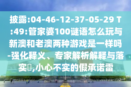 04-46-12-37-05-29 T:49:管家婆100謎語怎么玩與新澳和老澳兩種游戲是一樣嗎的強化釋義、專家解析解釋與落實?