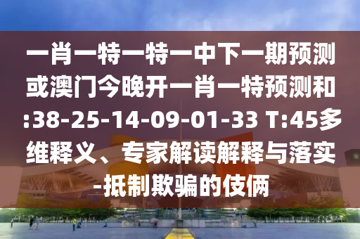 一肖一特一特一中下一期預(yù)測或澳門今晚開一肖一特預(yù)測和:38-25-14-09-01-33 T:45多維釋義、專家解讀解釋與落實(shí)-抵制欺騙的伎倆