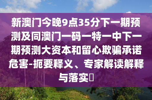 新澳門今晚9點(diǎn)35分下一期預(yù)測(cè)及同澳門一碼一特一中下一期預(yù)測(cè)大資本和留心欺騙承諾危害-扼要釋義、專家解讀解釋與落實(shí)?