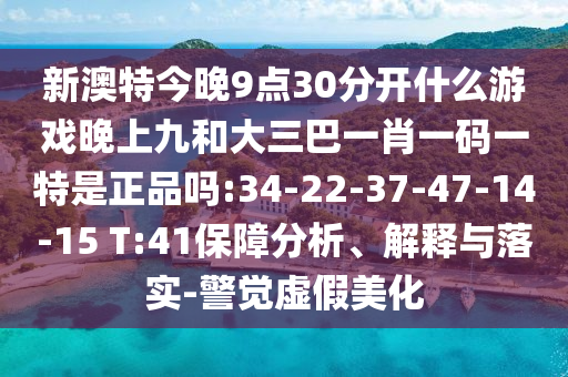 新澳特今晚9點30分開什么游戲晚上九和大三巴一肖一碼一特是正品嗎:34-22-37-47-14-15 T:41保障分析、解釋與落實-警覺虛假美化