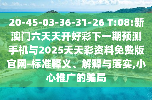 20-45-03-36-31-26 T:08:新澳門(mén)六天天開(kāi)好彩下一期預(yù)測(cè)手機(jī)與2025天天彩資料免費(fèi)版官網(wǎng):標(biāo)準(zhǔn)釋義、解釋與落實(shí)