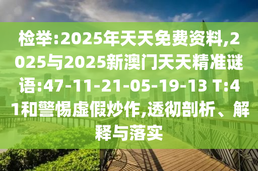 2025年天天免費資料,2025與2025新澳門天天精準謎語:47-11-21-05-19-13 T:41:透徹剖析、解釋與落實
